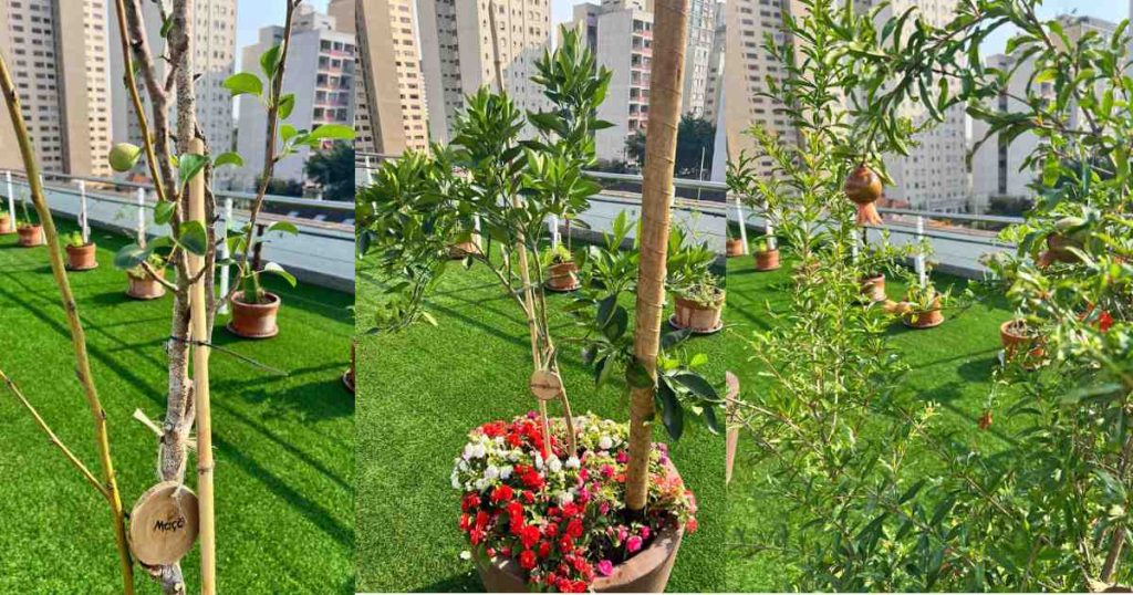 Dessa união de dois setores surgiu a ideia da criação de um pomar, no terraço do prédio, para “semear” uma relação de companheirismo entre os colegas de trabalho. Assim, cada funcionário dos dois departamentos “adotou” uma árvore – comprada com o próprio dinheiro -, assumindo a responsabilidade de cuidar de sua própria planta.