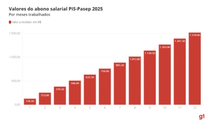 Apenas quem trabalhou durante os 12 meses do ano-base recebe o valor integral — equivalente a um salário mínimo. Com o reajuste do mínimo, o benefício pode variar entre R$ 126,50 e R$ 1.518,00, conforme o tempo de serviço.
