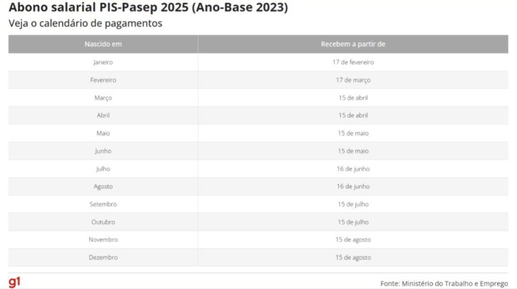 Os valores e dados bancários — incluindo informações de anos anteriores — podem ser verificados no aplicativo Carteira de Trabalho Digital e no portal gov.br. Assim como em 2024, o calendário de pagamentos de 2025 é unificado: tanto trabalhadores da iniciativa privada quanto servidores públicos recebem conforme o mês de nascimento.