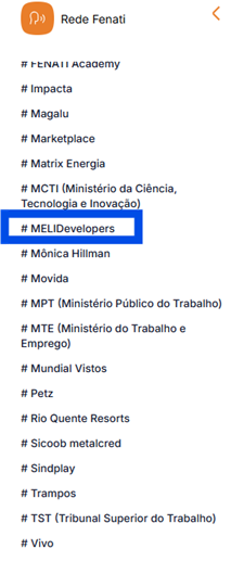 - Faça o login e procure o canal #MELIDevelopers no canto esquerdo da tela