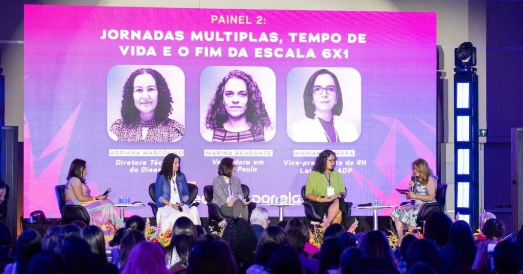 O segundo painel levou o debate para além do ambiente corporativo, trazendo à tona as chamadas jornadas múltiplas — quando o trabalho profissional se soma às responsabilidades domésticas e de cuidado.